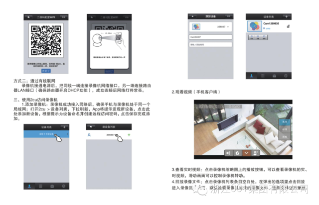 使用環(huán)境與設備:蘋(píng)果、三星、小米、華為等4G的智能手機,支持IOS系統和安卓系統。001手機監控錄像機的通訊傳輸環(huán)境,需要4兆以上的速率,有線(xiàn)無(wú)線(xiàn)兩用,有寬帶線(xiàn)直接輸入,或者用無(wú)線(xiàn)wifi信號的均能使用。該產(chǎn)品安裝調試方便簡(jiǎn)單,可以說(shuō)是傻瓜型的,即插即用,將智能手機打開(kāi)二維碼掃一掃,對準掃描001手機監控錄像機的底部二維碼,下載手機的終端應用軟件,點(diǎn)擊打開(kāi)應用軟件后,將手機屏幕的二維碼垂直平對錄像機鏡頭,離鏡頭距離20公分左右,靜止20秒鐘左右直到聽(tīng)見(jiàn)錄像機內發(fā)出“嘀”的一聲后,手機與錄像機連接成功,然后將手機的終端軟件圖標點(diǎn)擊打開(kāi)設置,見(jiàn)圖按順序設置你的名字,設置密碼123保存后就可以使用了,具體的安裝調試,請參見(jiàn)產(chǎn)品的使用說(shuō)明書(shū)進(jìn)行操作。